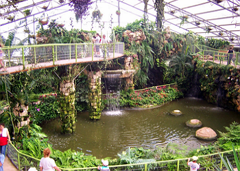 Водопады, бассейны, рыбы, птицы разных видов, а также десятки тысяч тропических растений (среди них и хищные растения) создают идеальную естественную среду для выращивания орхидей.